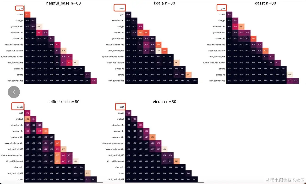 - 胜率都在 80% 以上的 Claude 和 ChatGPT 分别排名第二和第三,其中 Claude 以不到 3% 的优势超越 ChatGPT-3.5。