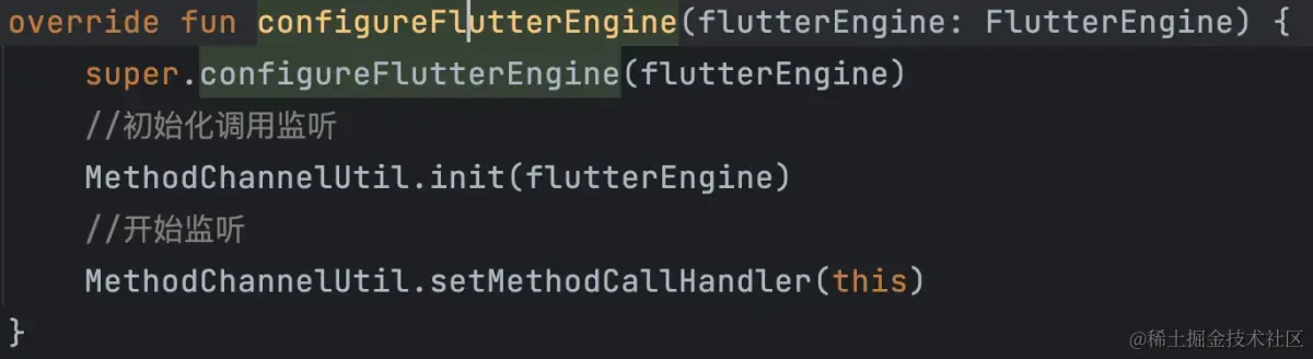 1、Main Activity继承FlutterActivity类,并实现configureFlutterEngine函数:如下: