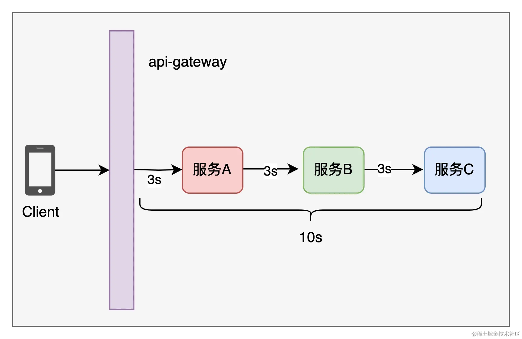 - 链路超时:也就是在服务进入gate-api的时候,应该设置一个链路时间。(我们服务设置的是10s)