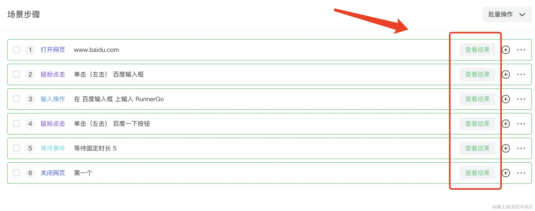 点击后可以查看执行结果可以看到步骤截图: