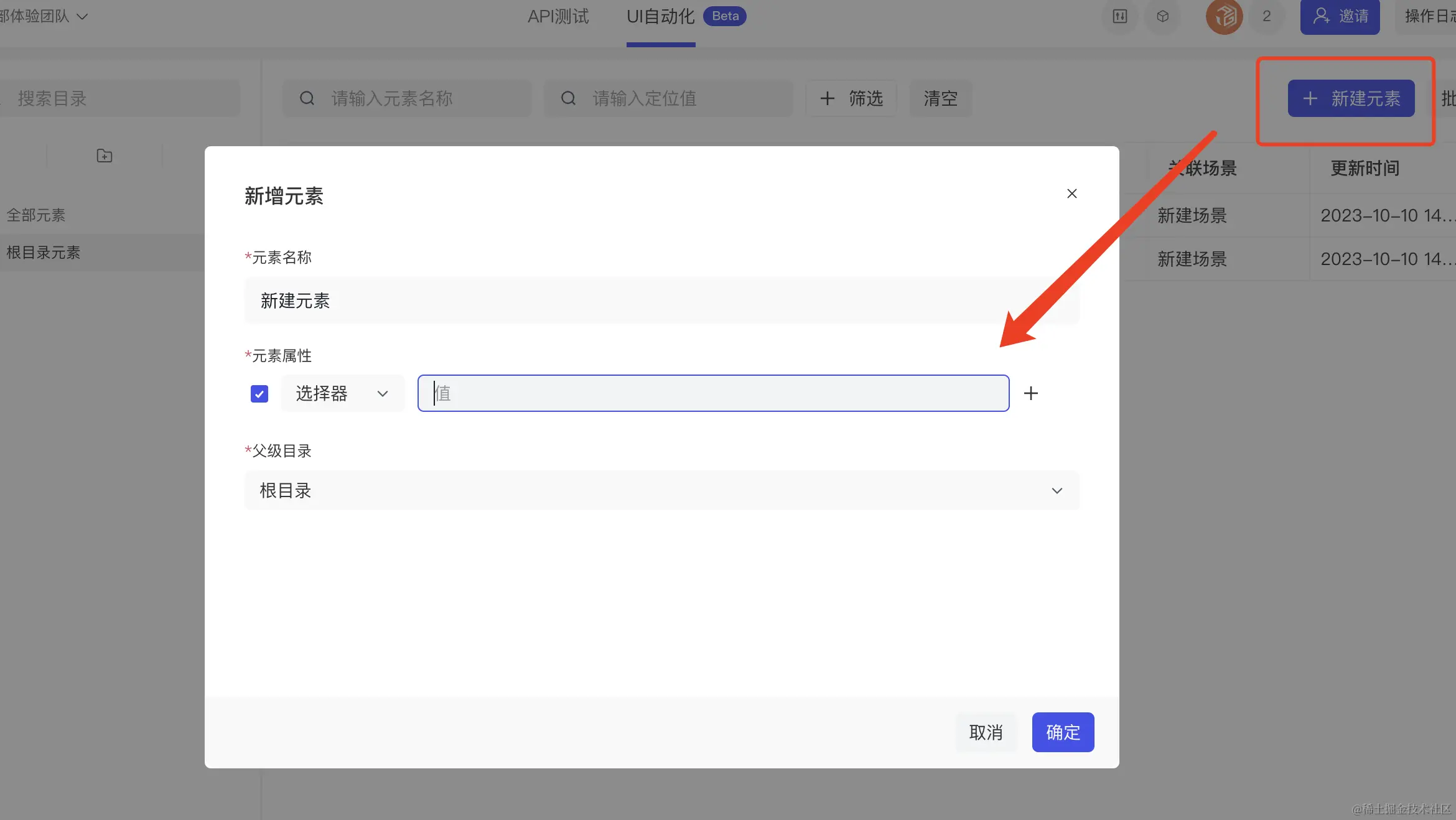 我们可以在元素管理中创建我们测试时需要的元素
