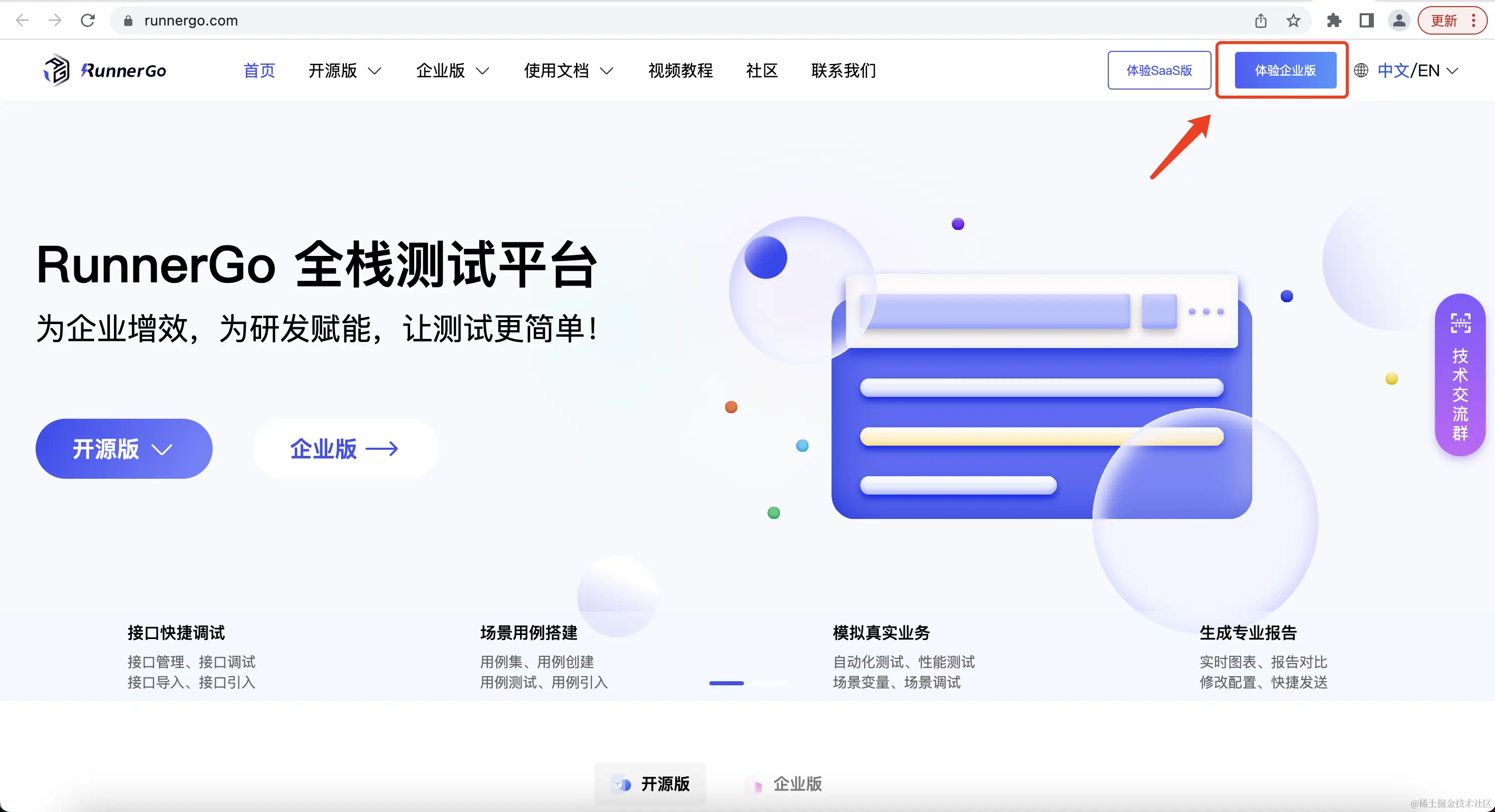 可以直接进入官网下载开源版或点击右上角体验企业版体验