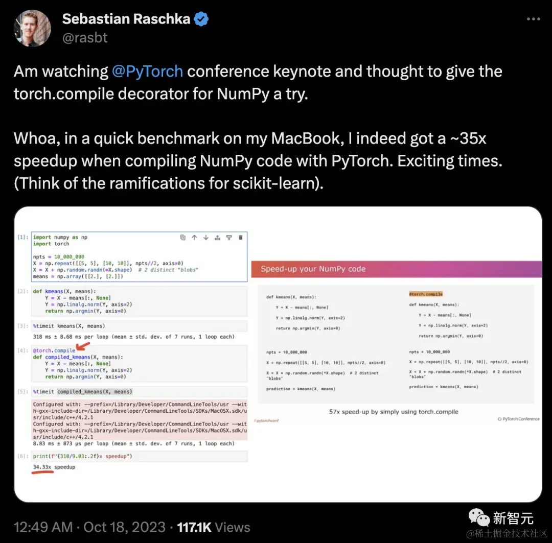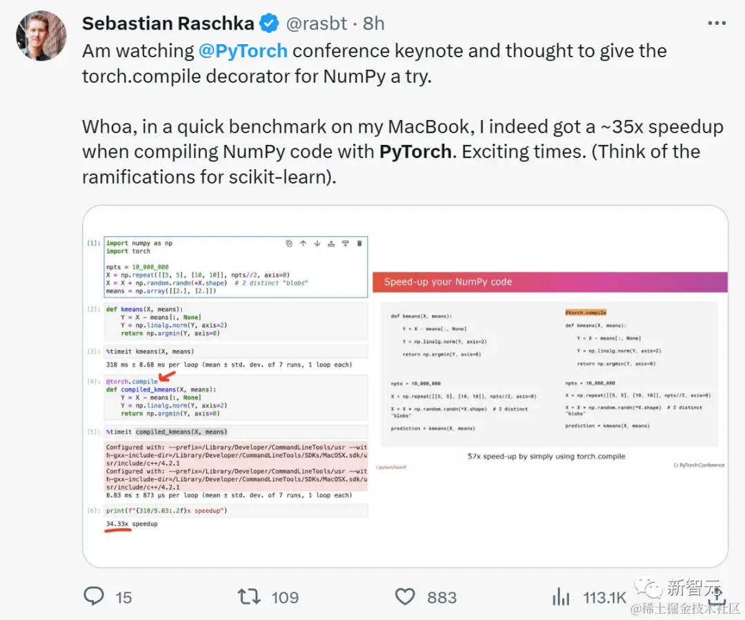 深度学习大佬Sebastian也证实,这次更新后,用PyTorch编译NumPy代码时速度暴增35倍!激动人心!