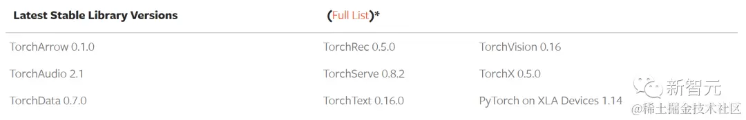除了2.1之外,官方还发布PyTorc域库的一系列测试版更新,包括TorchAudio和TorchVision。下面是最新稳定版本和更新的列表。