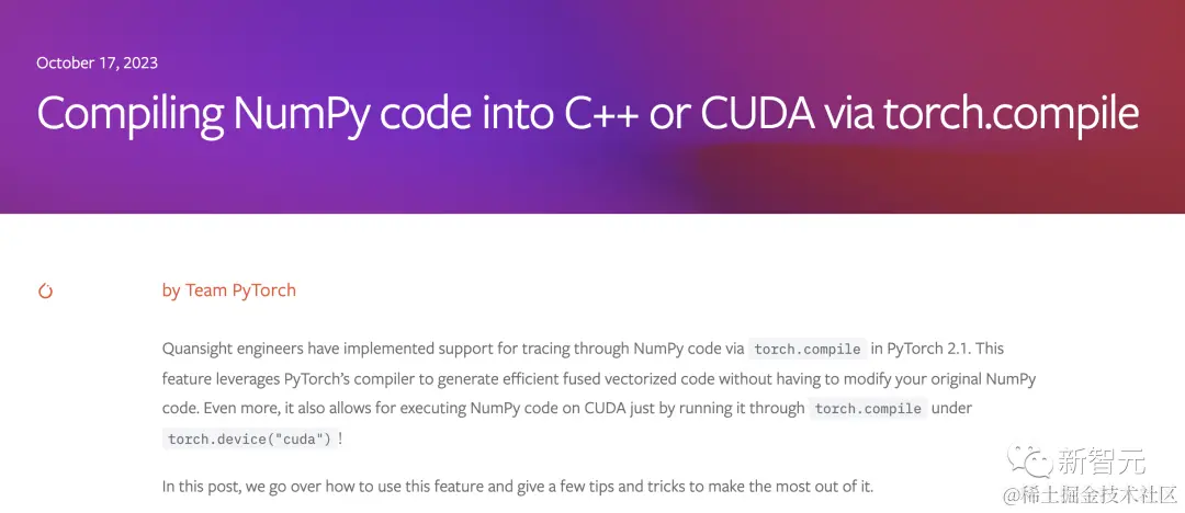 Quansight工程师在PyTorch 2.1中通过torch.compile实现了对NumPy代码跟踪的支持。