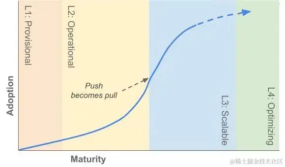 在进一步了解成熟度模型之前,我们需要达成一个共识:企业不需要把 Level 4 当作唯一的追求目标。因为成熟度每提高一个级别,对资金和人员投入时间的要求也会随之提高。企业需要因地制宜地制定平台建设规划,这种有效的规划和规范本身就是平台持续演进的先决条件。