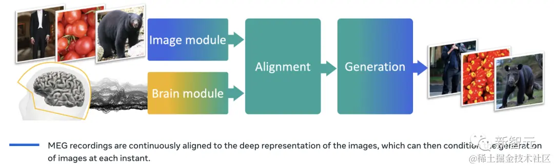 Meta 认为,虽然功能性磁共振成像 (fMRI) 可以更好地解码图像,但 MEG 解码器可以实时生成结果,连续解码大脑活动,生成连续而且几乎是实时的图像流。