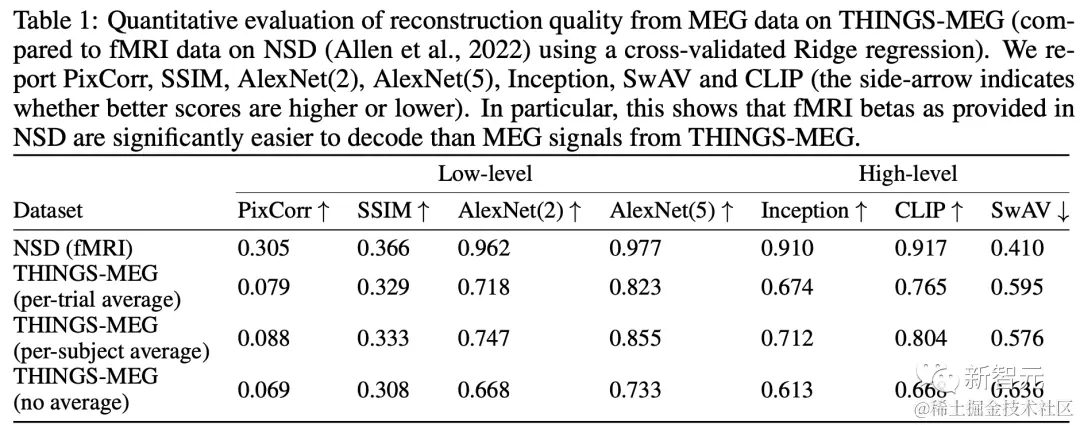 作者为了评估方法的有效性,使用了检索指标 relative median rank,top-5 accuracy,生成指标 PixCorr、SSIM、SwAV。同时,为了对 MEG 解码性能进行公平评估,作者利用了数据集中的重复图像演示,在评估指标之前对预测值取平均值。