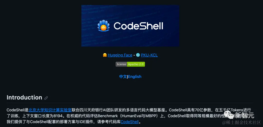 CodeShell 模型和插件的相关代码已经在 Github 发布,并严格遵循 Apache 2.0 开源协议,模型在 HuggingFace 平台发布,支持商用。