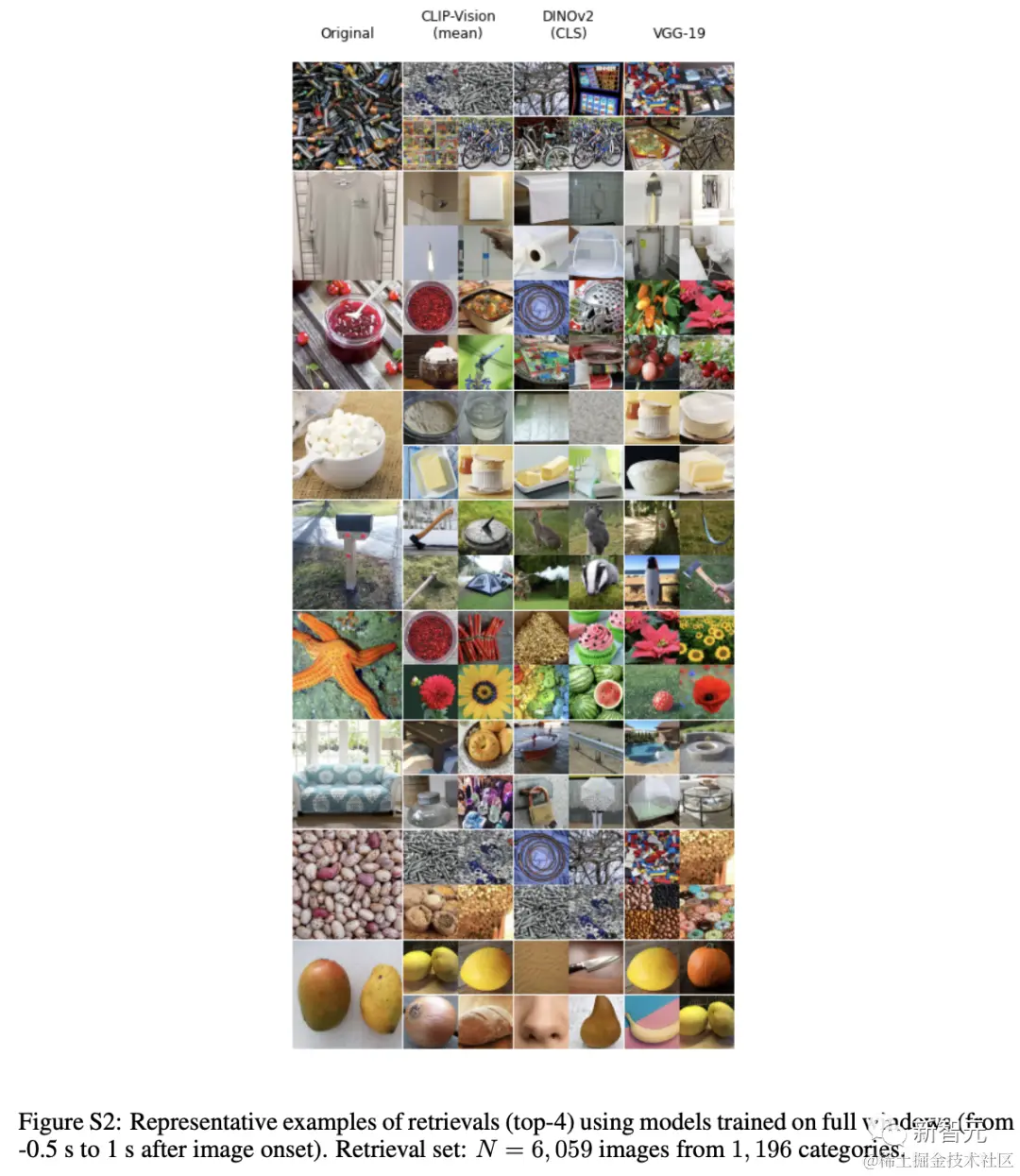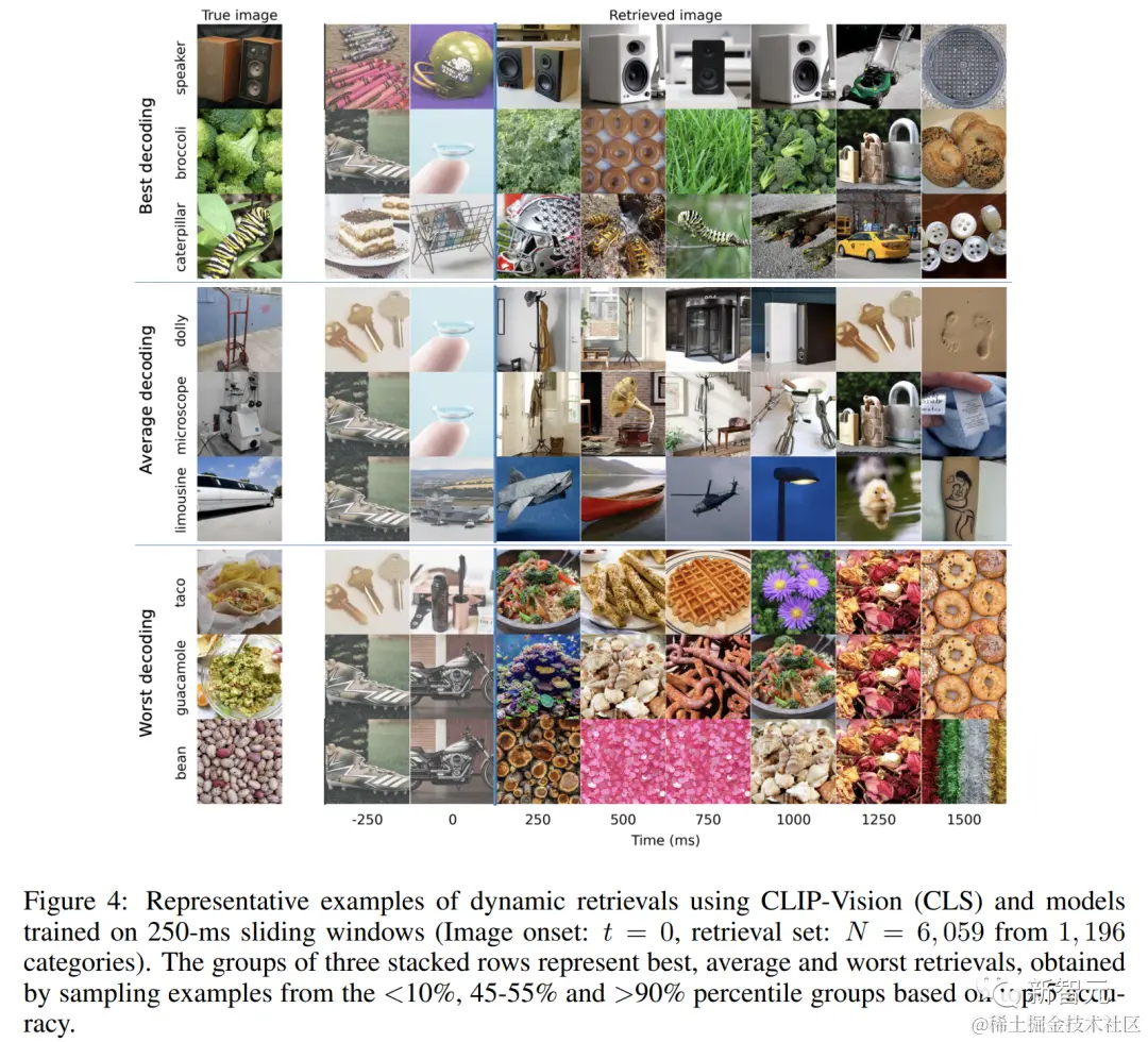为了更好地理解解码指标的含义,下图展示了通过将原有测试集与由 3,659 张参与者未见过的图片组成的附加集,在这上测试了检索结果。