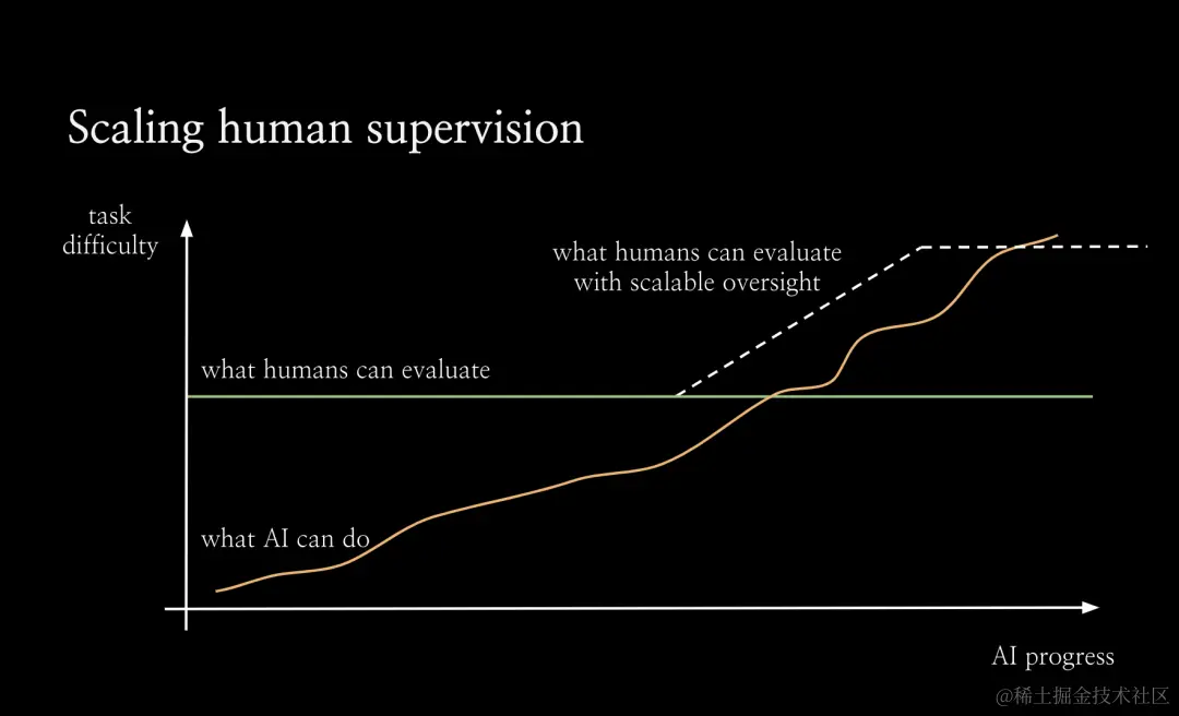 随着 AI 不断进步,RLHF 可能会逐渐失效,人类评估模型的能力遭遇瓶颈。如何判断可扩展监督正在发挥作用?可扩展监督的目标是什么?