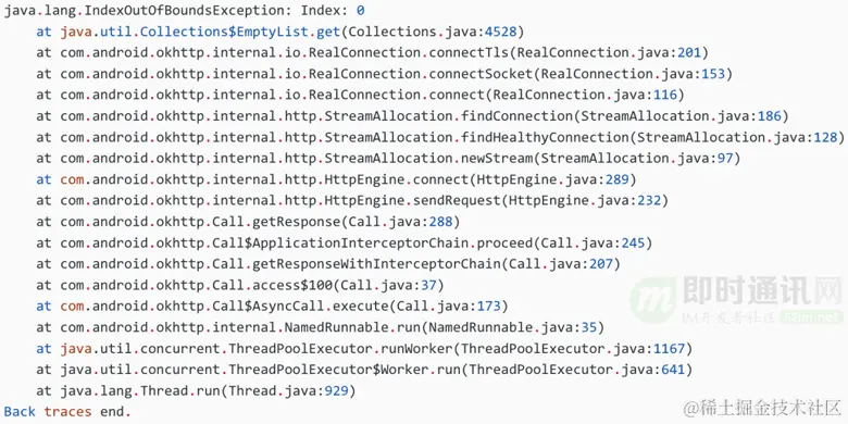 okhttp 导致 IndexOutOfBoundsException 代码: