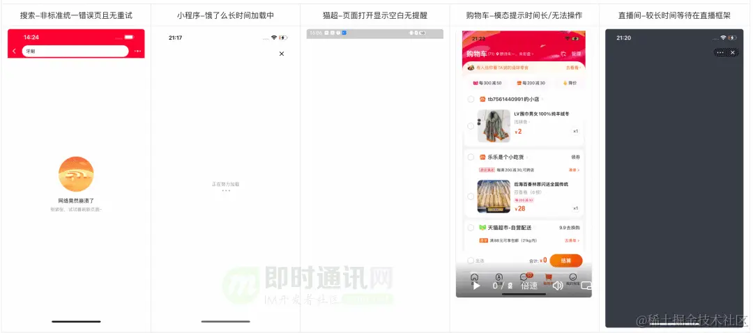 我们发现淘宝多业务在弱网交互下表现不一,存在着无法刷新重试、空白无提示、阻塞无法操作等问题。