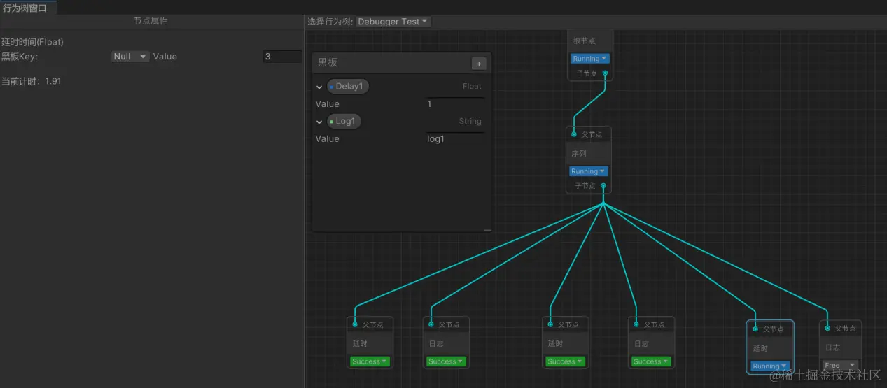 1、完整的行为树Runtime框架与配套的可视化编辑器与调试器;