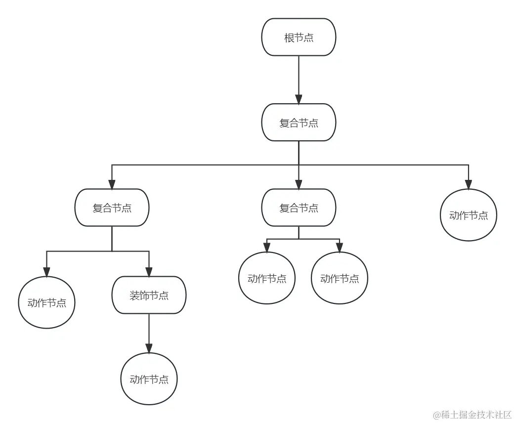 动作节点没有子节点,位于整个行为树的末端以负责最终的逻辑执行,通常会封装具体模块的业务逻辑(如寻路、攻击等)。