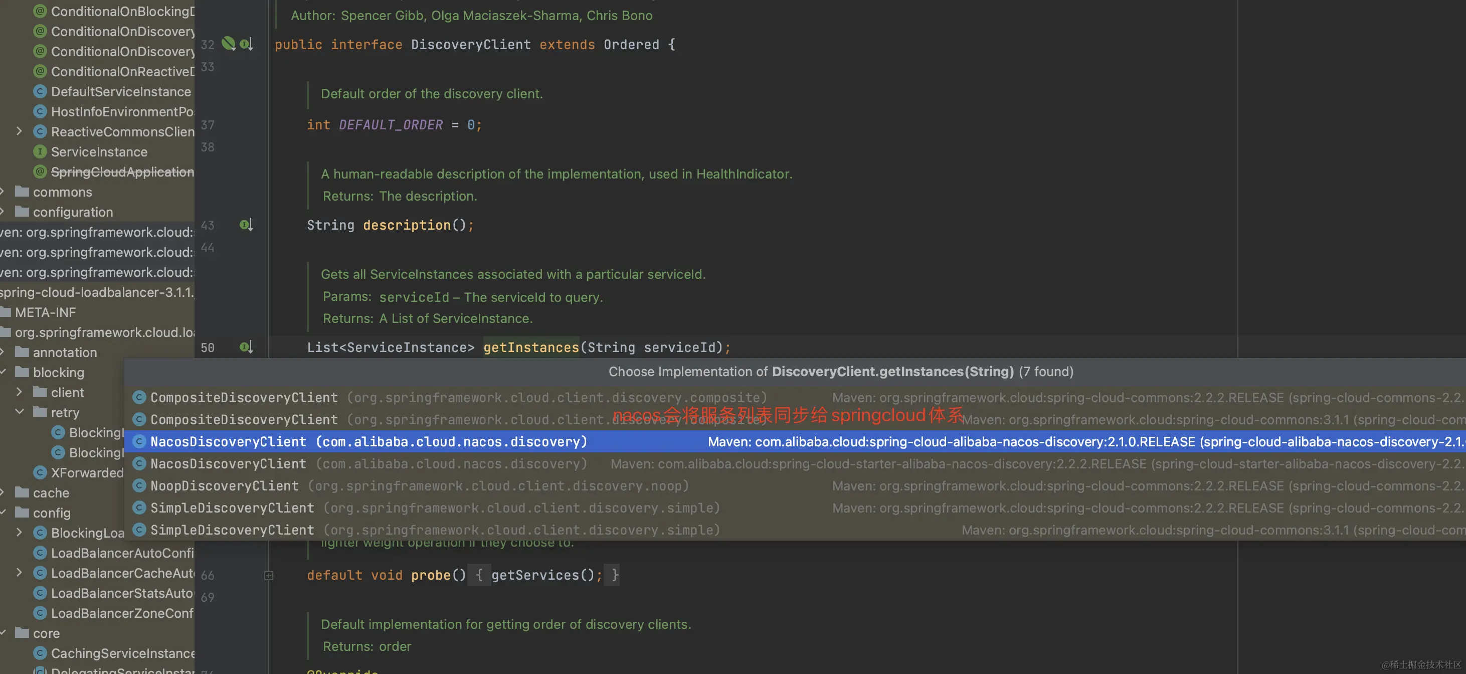 Nacos 实现了DiscoveryClient (springcloud 提供的服务注册发现规范)