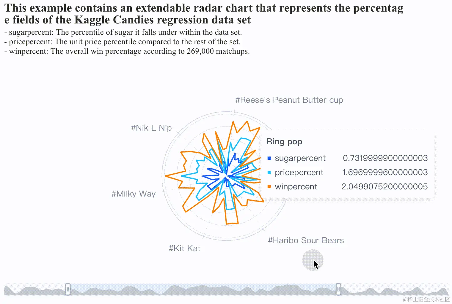 在VChart中,缩略轴不再是直角坐标轴的专属控制器,它拥有的数据筛选和统计能力同样应用于极坐标系。