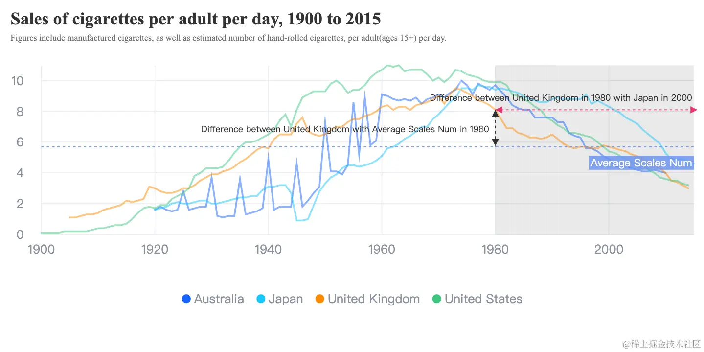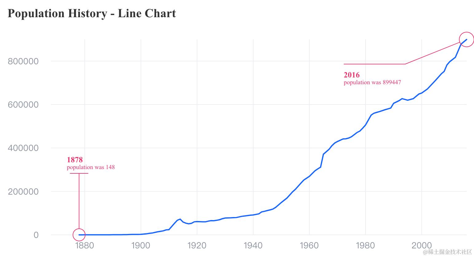 在VChart中,标注被划分为标注线、标注区域和标注点,它们的作用也不限于针对单个数据元素的标注,而是在此之上进行拓展: 多个数据元素的聚合、回归计算;跨越布局单元的数据标记;数据坐标轴空间的定位标记;任意位置的定位标记;标注内容的多样化格式。
