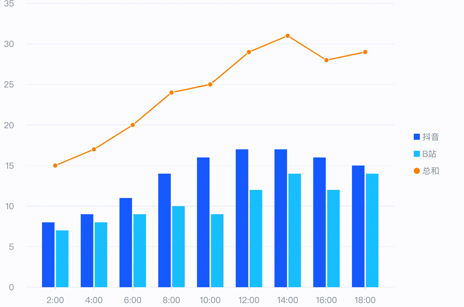 在 VChart 中,内置了一些通用的动画类型。这些动画类型可以直接在配置中使用,实现常见的图元动画效果,下面简单举几个例子。