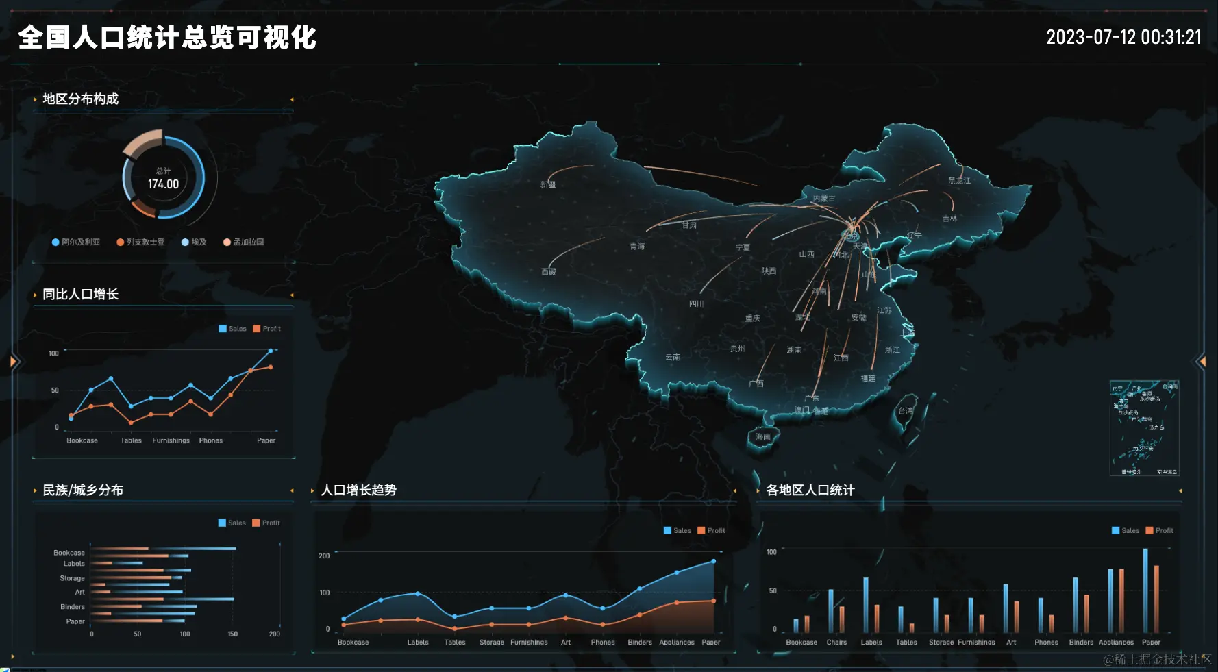 大屏产品对图表展现形式、动画以及主题提出了新的 挑战,VChart 灵活的扩展能力,可以快速满足各种定制化大屏的需求。