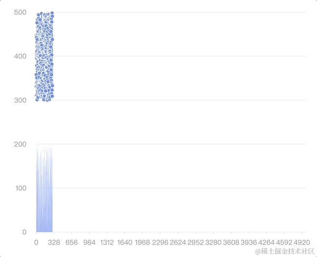 VChart 内部针对数据处理、语法解析、图形渲染等多个环境精益求精,追求性能至上。尤其是大数据渲染场景下,提供分片、采样、渐进渲染等多种手段,力求达到首屏快速出图、动画流畅、交互顺滑的效果。