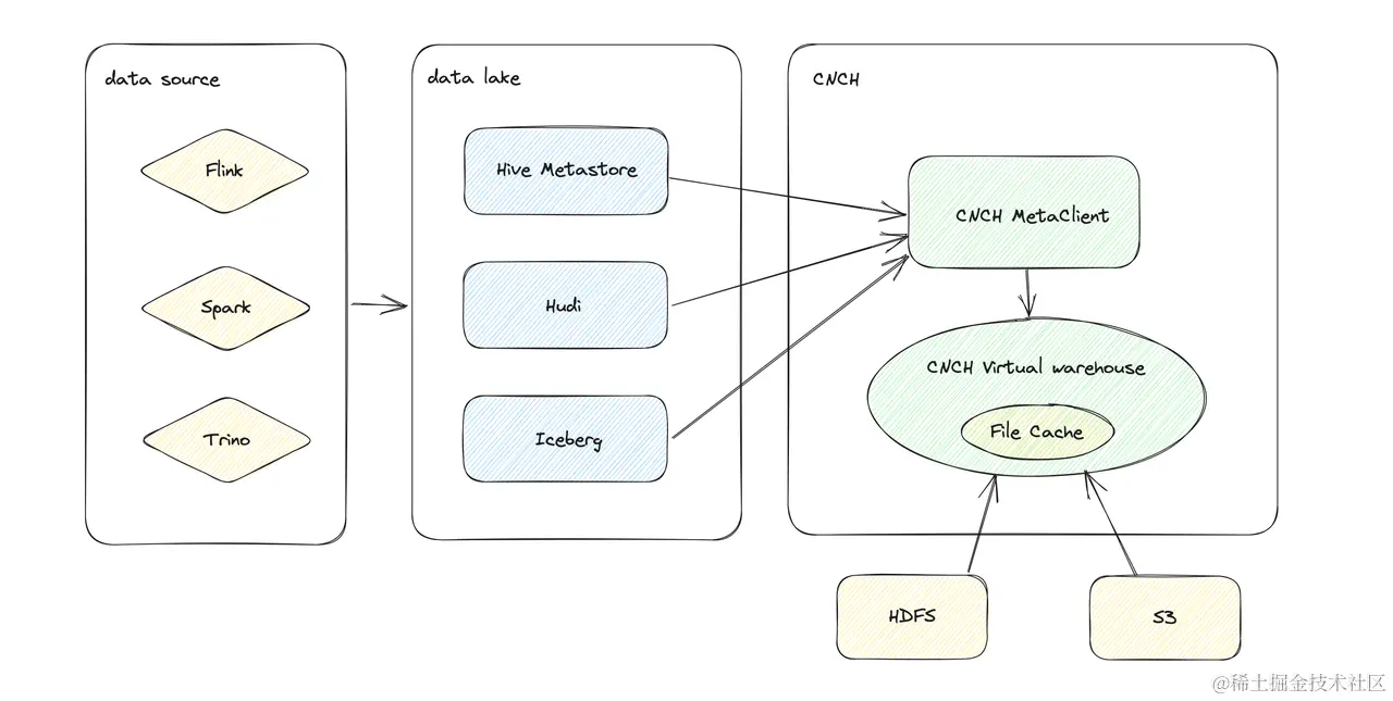 ClickHouse 支持以外表的形式读取 Hive 以及 Hudi/Iceberg 等格式。这些外表都是以本地单机表的形式存在,因此性能并不能令人满意。且实现上较为割裂,使用起来较为不便。目前 Hive 仅能支持读取 HDFS 上数据,Hudi/Iceberg 仅能支持读取S3上的数据。