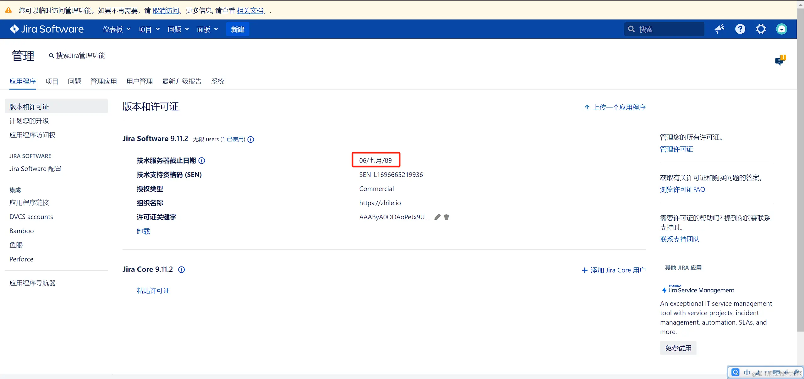 6、查询成功许可结果,可见许可到期时间为:2089-07-06