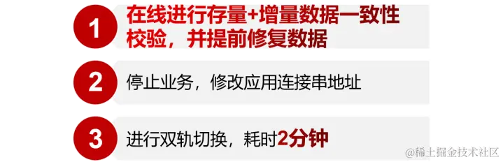 数据库切换全程总计 耗时2分钟 ,极大缩短因切换数据库导致的应用停机时间。****