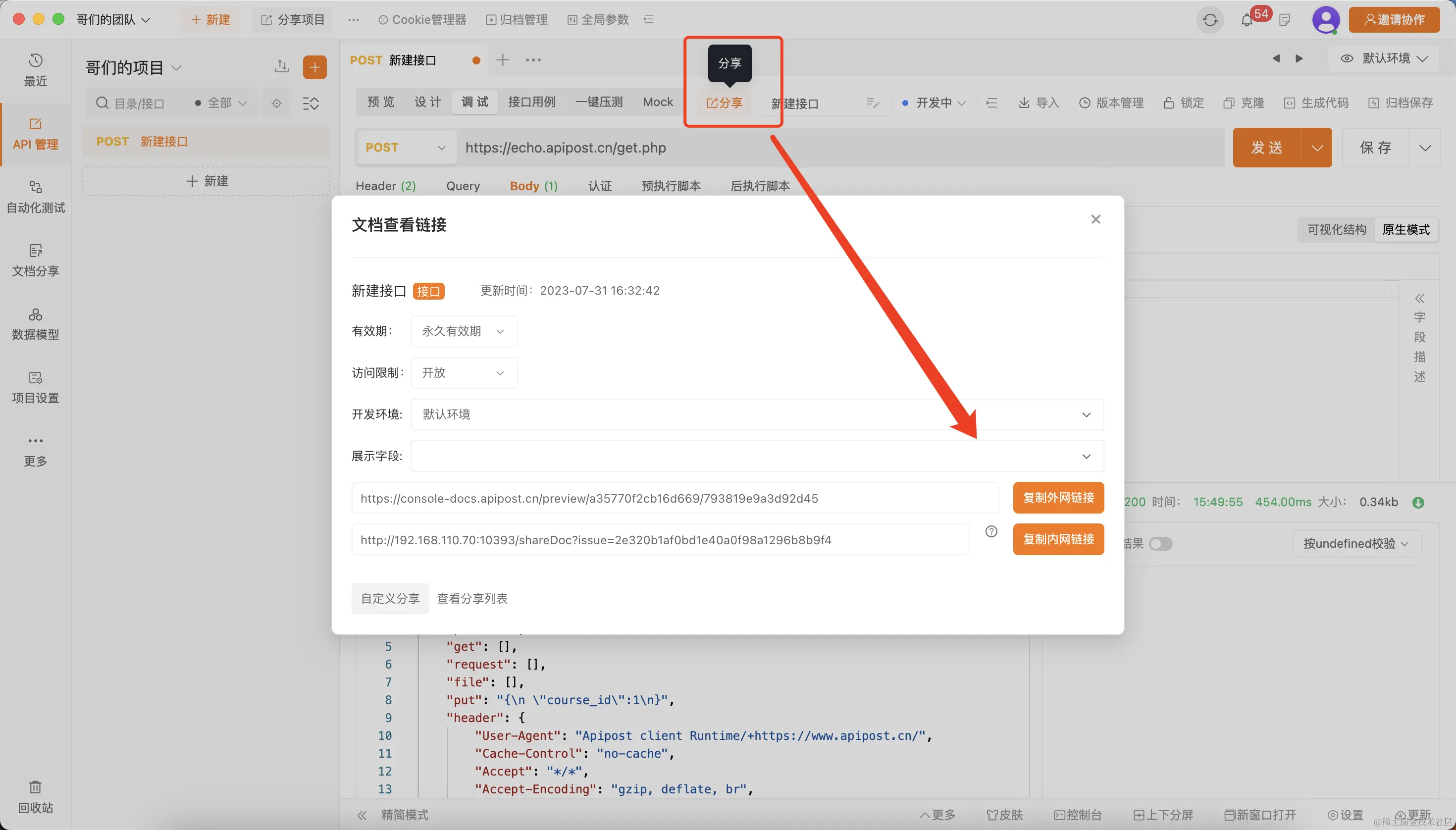 API文档:Apipost具备自动生成API文档功能,帮助开发者快速生成符合规范的API文档。同时,它还支持自定义文档模板,满足不同企业的需求。