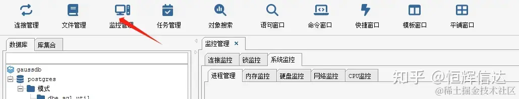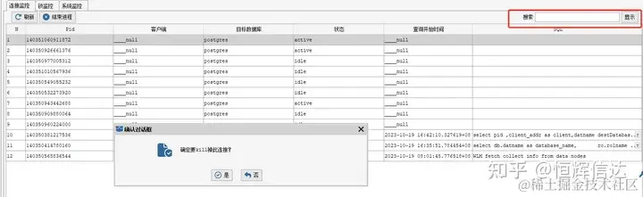 HHDBCS监控功能 恒辉信达 2023-10-20 50 阅读1分钟 HHDBCS拥有可视化监控功能,可进行连接监控、锁监控,以及系统监控。 首页,点击“监控功能”; 在连接监控界面,可以直接对连接进行操作;右上角搜索框,可以方便搜索。 锁监控界面, 同样有搜索框; 系统监控为安全问题,需登陆查看及操作; 系统监控项,包含了进程管理、内存监控、硬盘监控、网络监控,及CPU监控。 HHDBCS拥有直观的可视化界面,因此各项数据一目了然。 可直接对进程等进行操作。