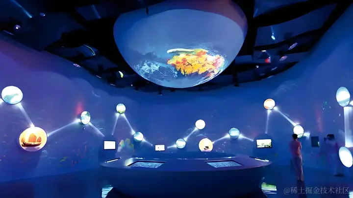 以往的投影形式,大多只能在平面场景实现,所具备的视觉空间感比较薄弱,而球幕投影技术的应用,通过全景式超大视角观看,能为观众带来强烈的视觉冲击性,因此,不少科普馆、体验馆都会让多媒体互动公司为其搭建相关的沉浸式内容展示空间。
