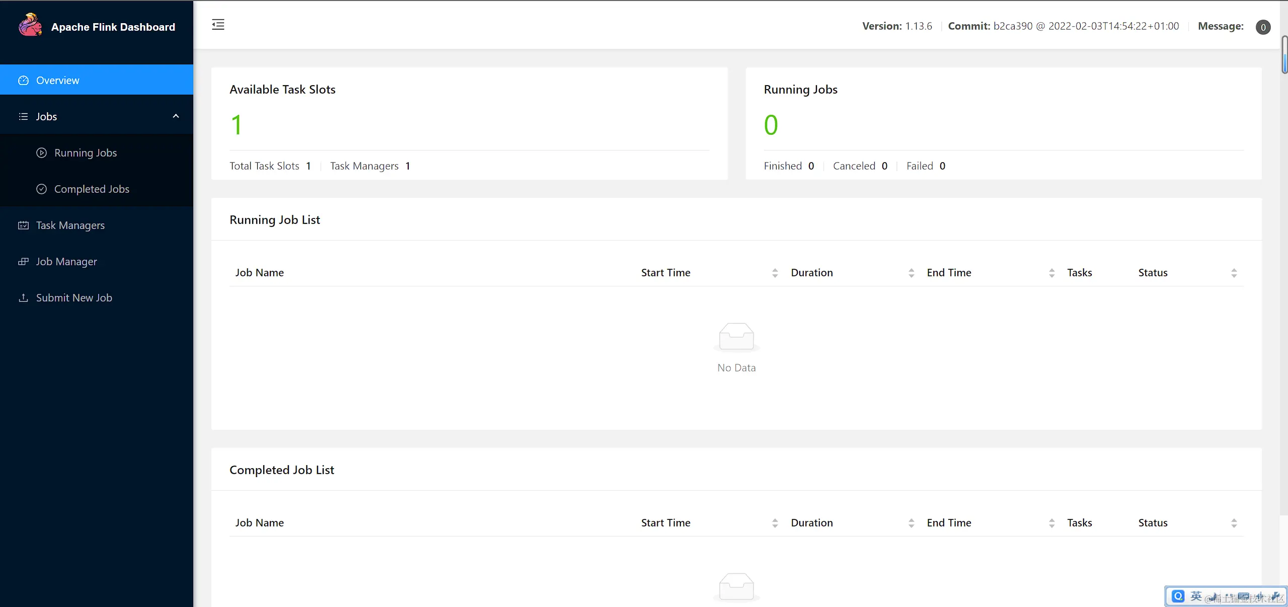 如下两个容器启动成功,可以看到 web 端口为 8081,taskmanager 启动一个