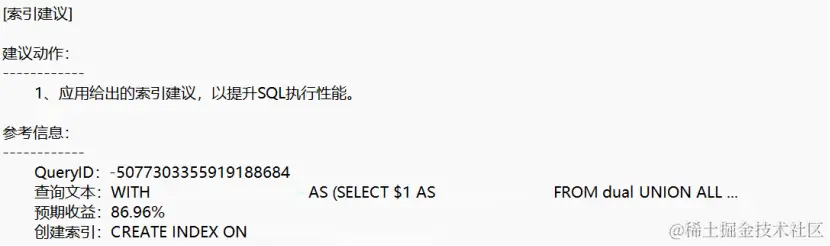 打开索引建议开关后,重新压测,生成KDDM报告。果然,索引建议赫然在目: