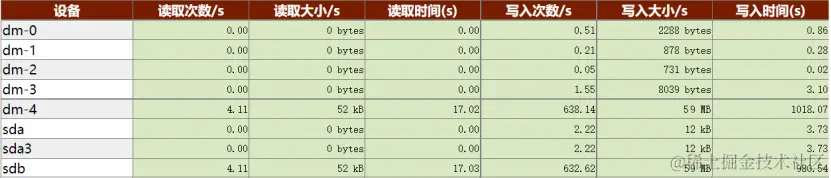 KWR报告显示,sdb磁盘每秒有59 MB的写操作,福尔摩斯.K熟练地在KSQL里输入了几条SQL查询,确认了KES数据目录正位于该磁盘上。再看其他磁盘均没有明显的IO操作。第一个线索隐隐约约出现了。但是这59 MB的磁盘IO到底来自哪里呢?