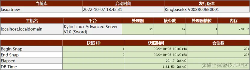 在和现场的华生简单对接后,福尔摩斯.K首先要排查一下服务器主机环境,并了解KES在该业务场景下的整体性能表现,确定性能优化目标。这通过KWR十分容易就能获得。