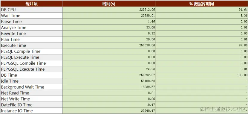 即:数据库时间 = 数据库CPU时间 + 前台(客户端会话)等待时间,