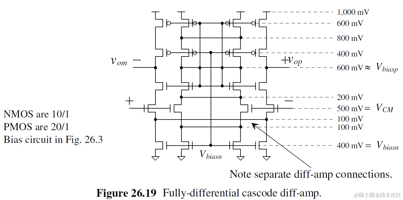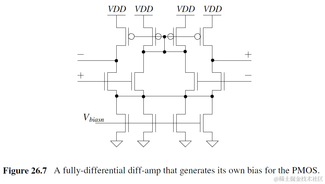 Figure 26.7 shows a diff-amp that generates its own bias reference for the PMOS devices.