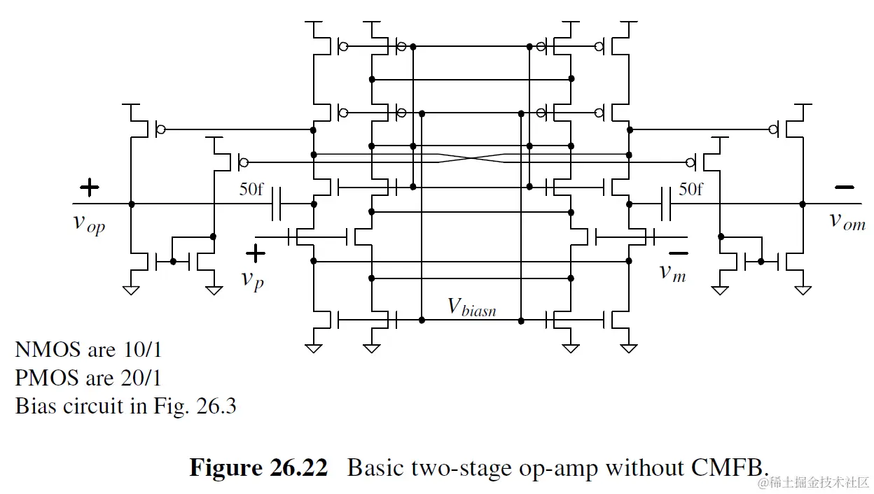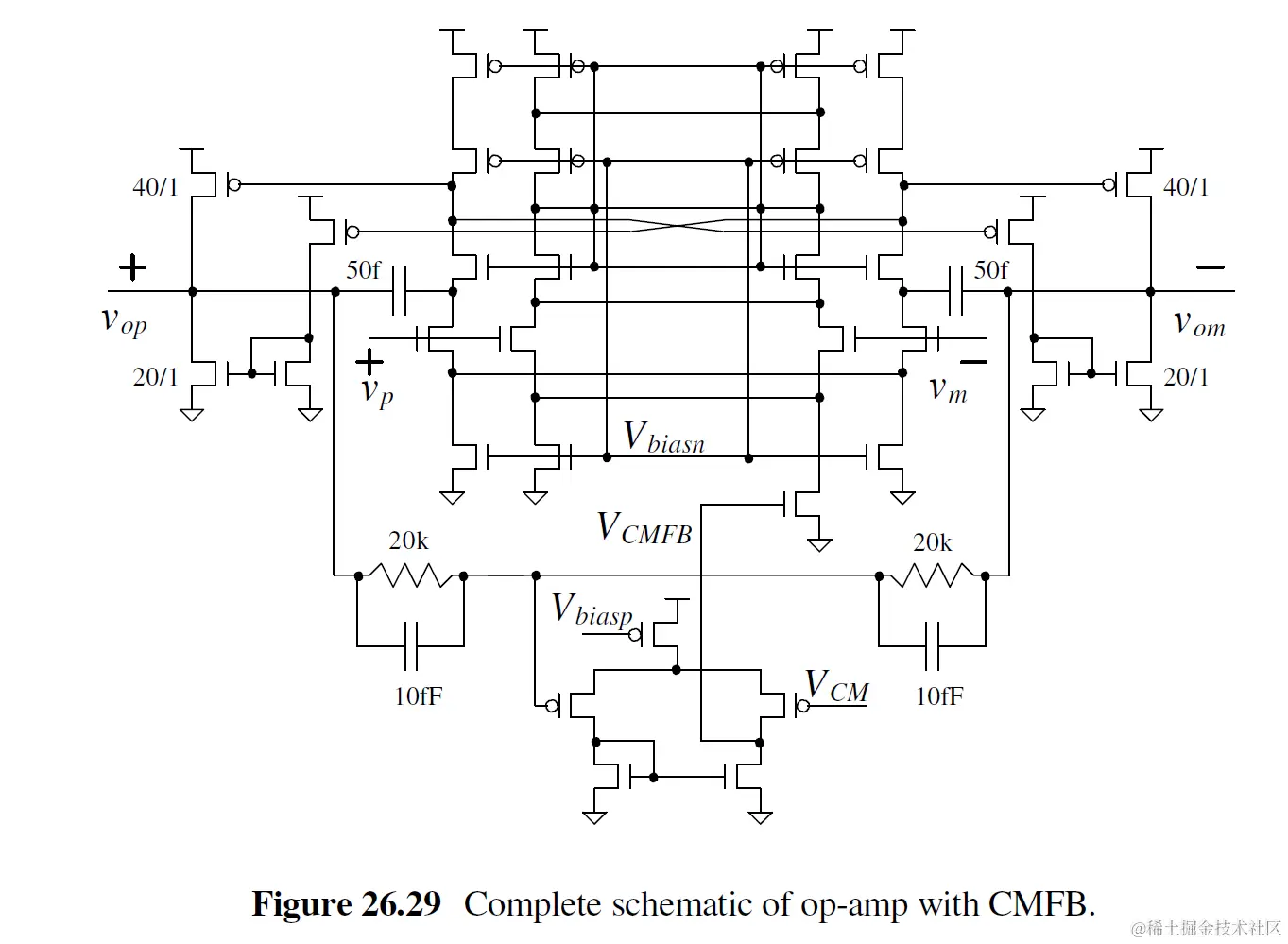 下图的CMFB形成负反馈环路, 把Output钳位在Vbiasp.