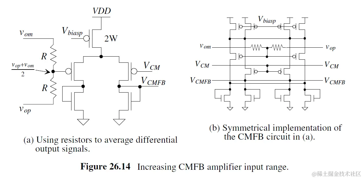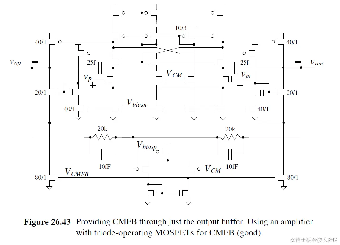 也可以在CMFB用triode-operating MOSFETs, 潜在问题就是gain可能较小.