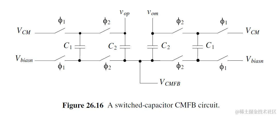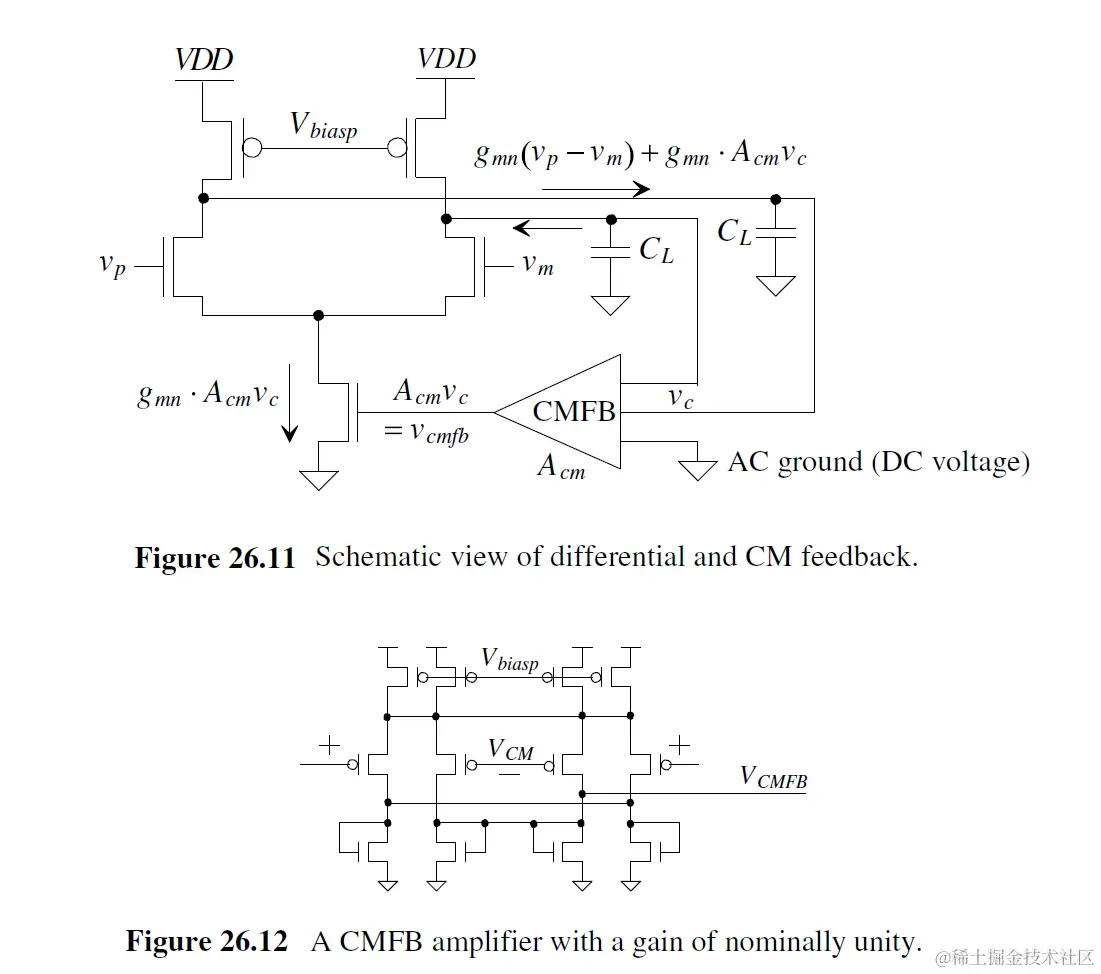 为了减小CMFB loop gain, 可考虑下图Fig.26.13. 这样CMFB只控制一半的tail current gate, gain会减小一半. 另外的手段就是调整CMFB transistor size来减小CMFB loop gain了.