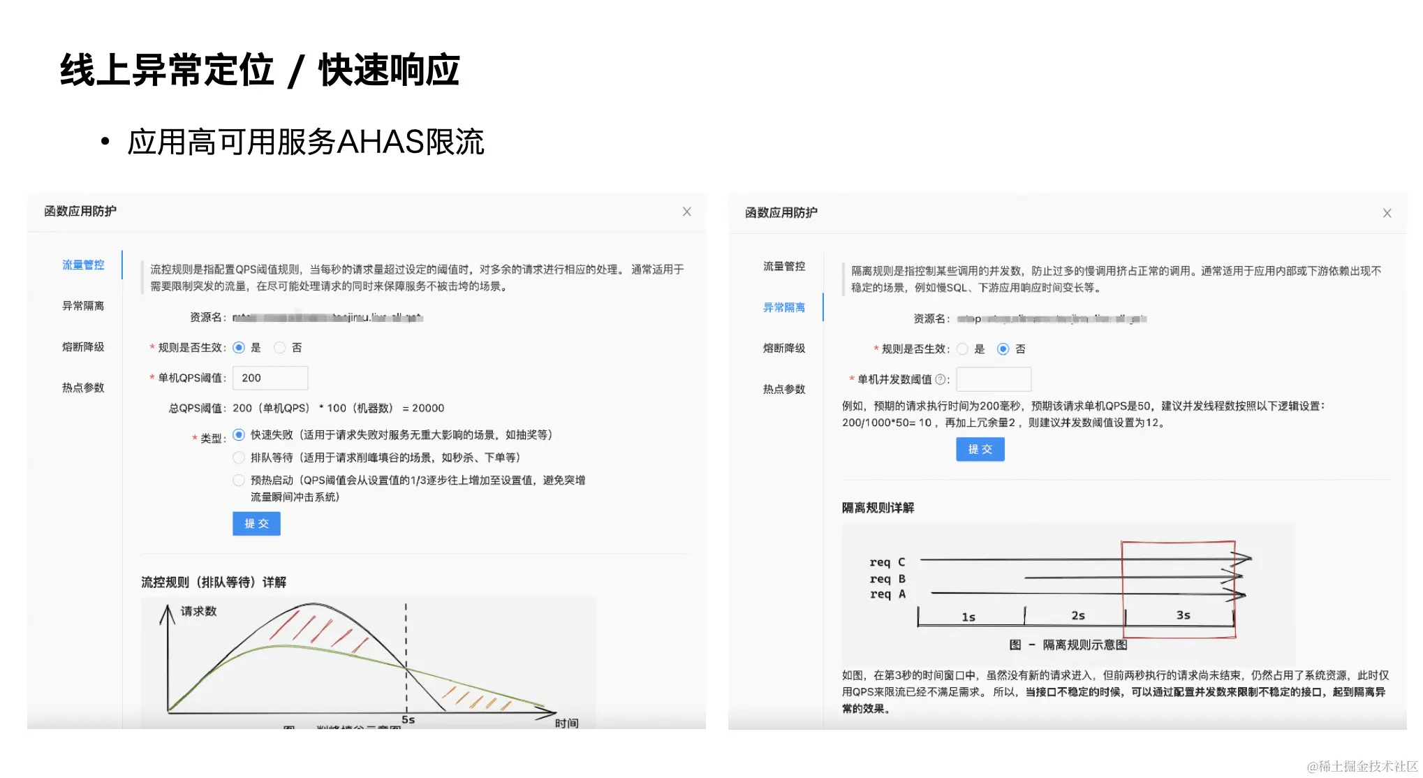 还可以实施一些限流措施,例如使用 AHAS 限流,对 QPS 进行限制。