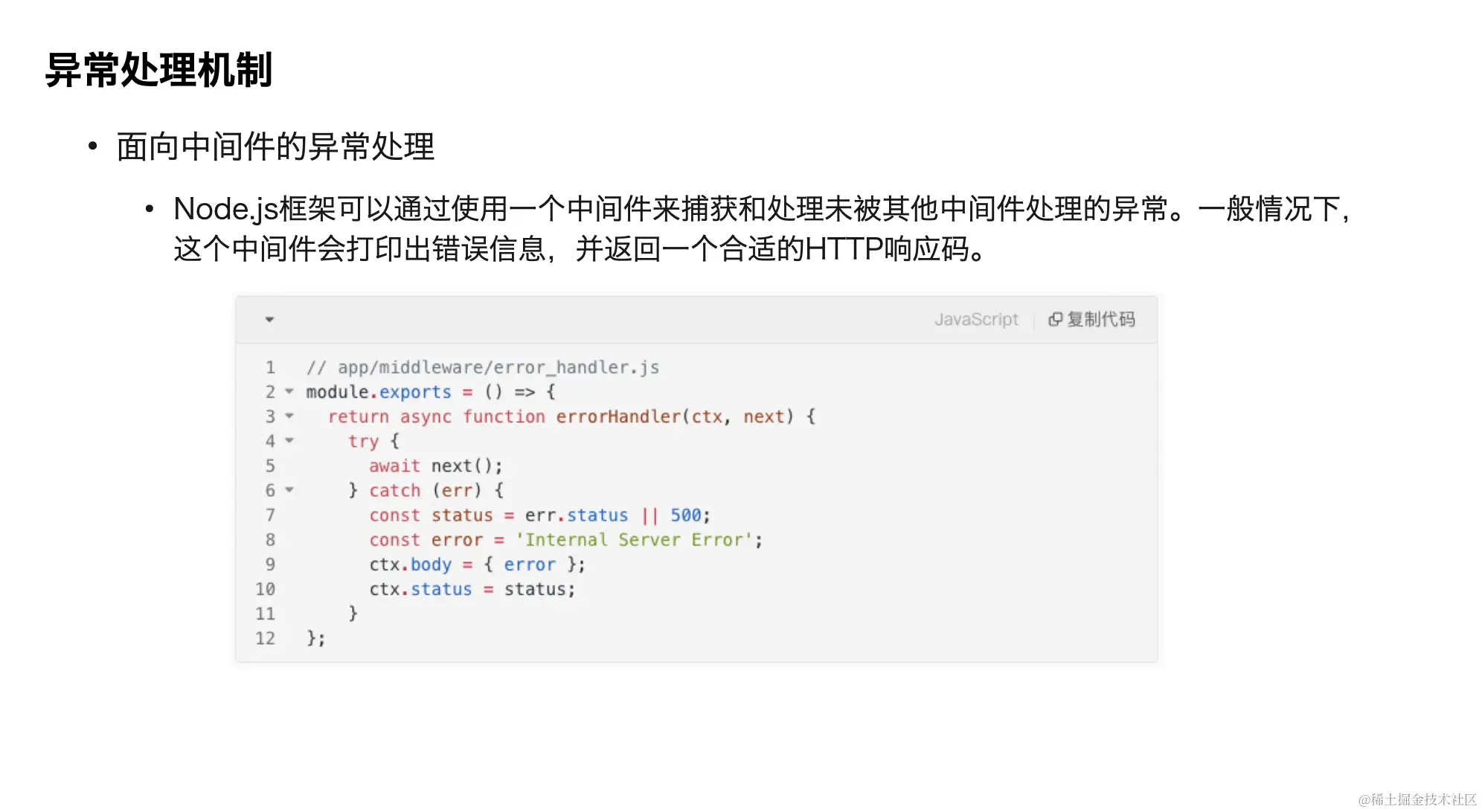 此外,许多框架也提供了用于处理中间件异常的机制。例如,在 egg 中,存在一个错误处理中间件,它通过记录错误信息并返回适当的HTTP响应来更好地应对异常情况。