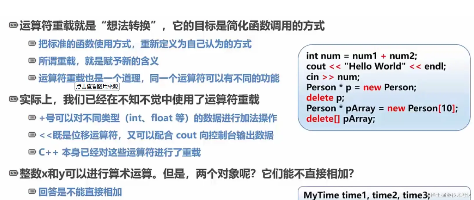 两种重载形式的返回值相同,都是void *类型,并且都有一个参数,为size_t类型。在重载 new 或 new[] 时,无论是作为成员函数还是作为全局函数,它的第一个参数必须是 size_t 类型。size_t 表示的是要分配空间的大小,对于 new[] 的重载函数而言,size_t 则表示所需要分配的所有空间的总和。