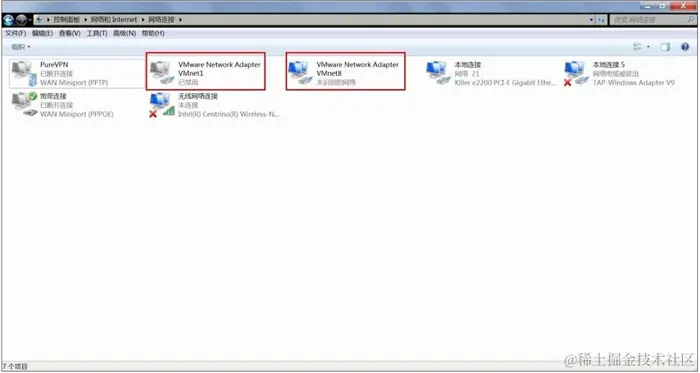 以上对于 VMware 网络的描述,读者看完了可能会有点困惑。简单总结—下,在 VMware 安装好后,会生成两个虚拟网卡 VMnet1 和 VMnet8 (在 Windows 系统的"网络连接"中可以査看到)。