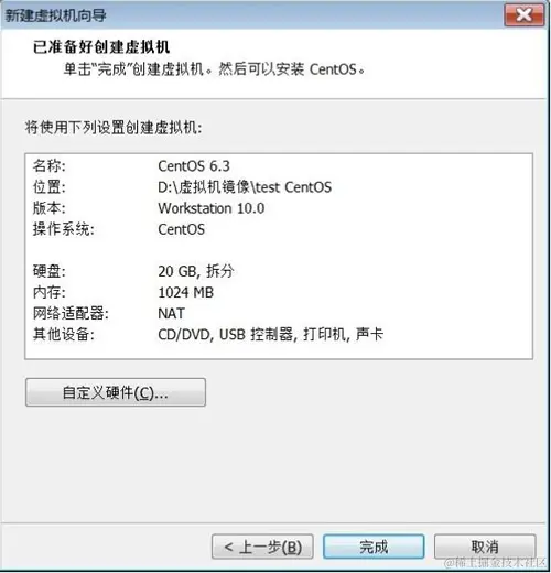 硬盘配置设置完成后,点击图 7 中的“完成”按钮,就成功创建了一台虚拟机!对于在图 3 中提前下载好 CentOS 映像并作相应设置的读者,此时 VMware 会直接启动 Linux CentOS 系统。