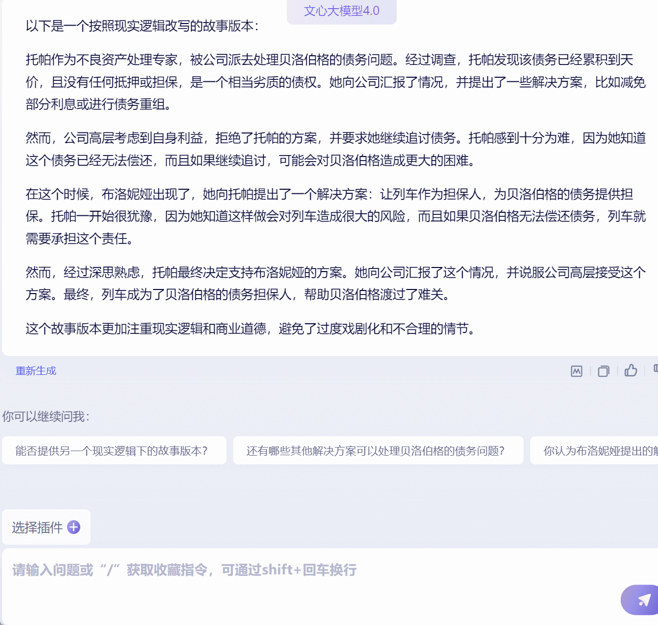看起来,文心大模型 4.0 可以在保持原始知识的情况下,与人在不断对话的过程中生成、提炼出你想要的内容。
