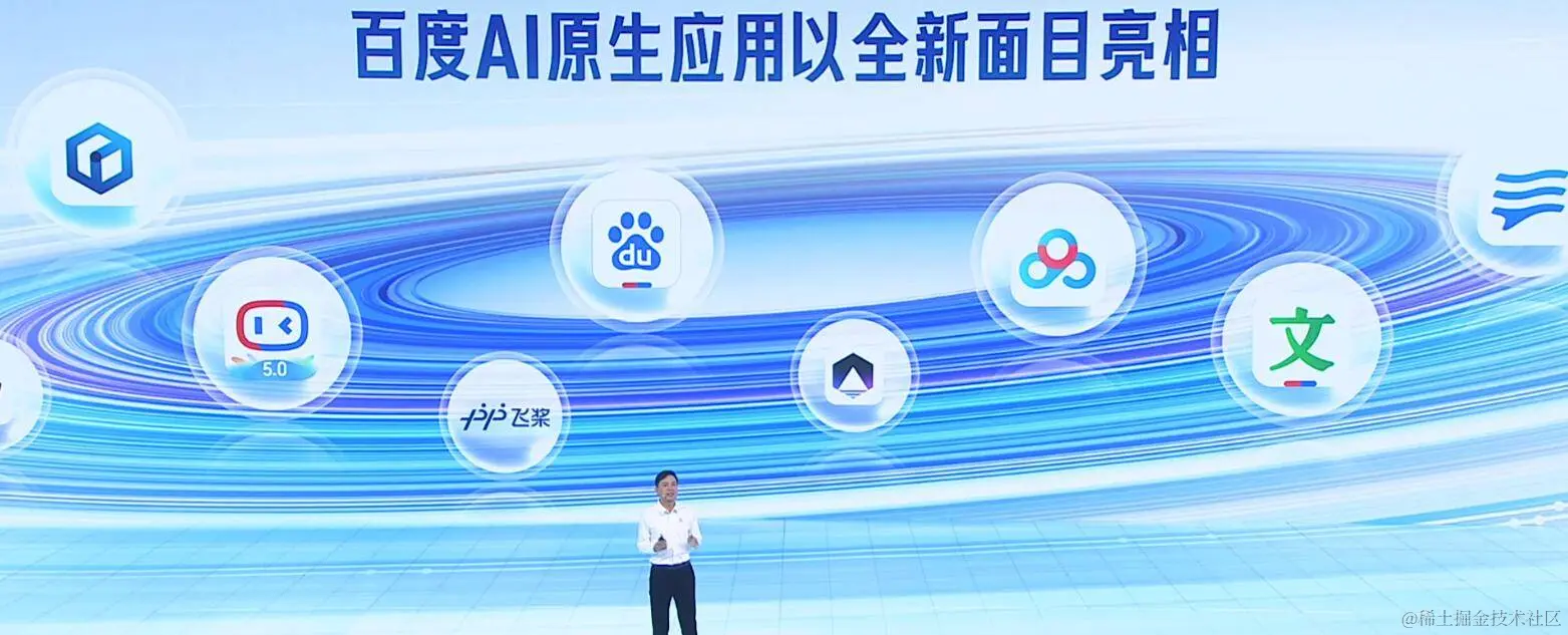 李彦宏表示,百度要做第一个把所有产品进行重构的公司。在世界大会上,百度发布了多款 AI 原生的应用,来自搜索、地图、文库、网盘等业务线的十余个应用产品全部亮相。