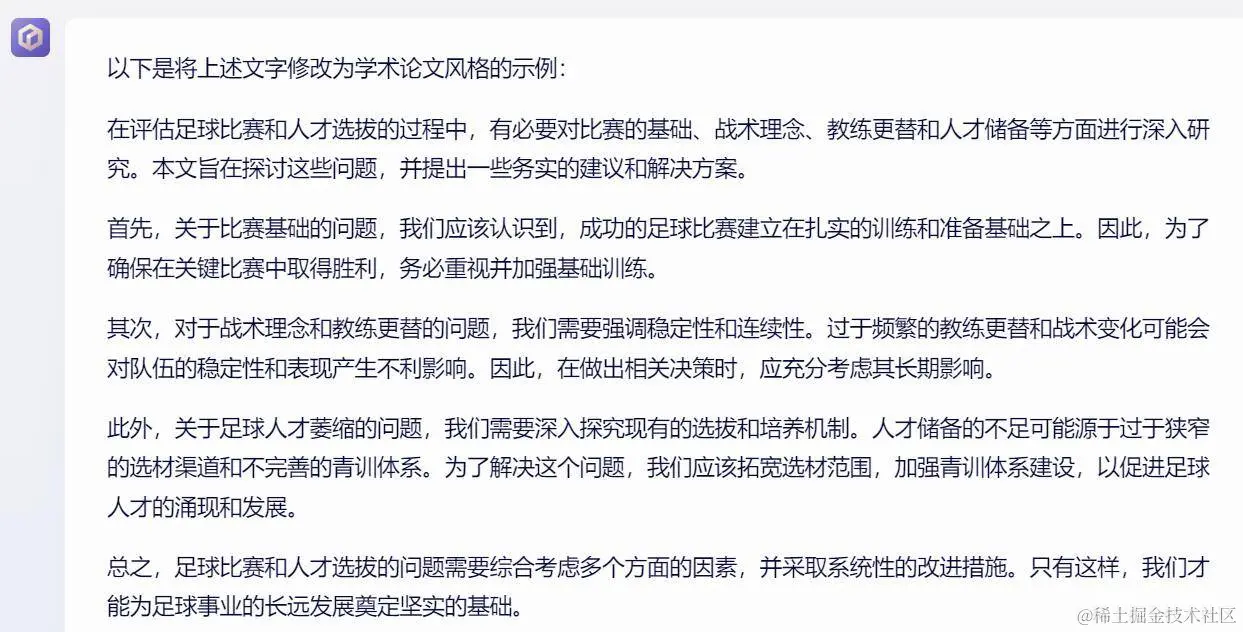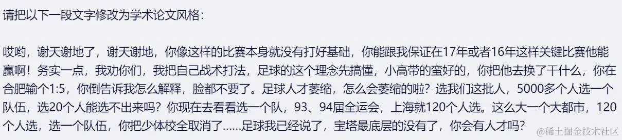 还有一些我们经常会用得到的功能。在 ChatGPT 出现后,越来越多的人开始尝试使用大模型帮忙来润色论文,据说 AI 写论文看起来很有功底,一般人还真比不上。我们用一段著名的发言试一下: