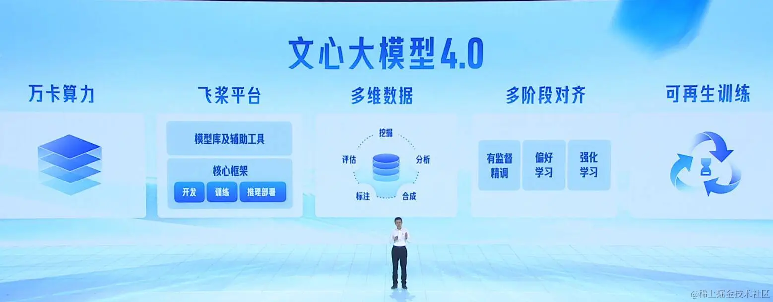 这些提升又是靠什么做到的?总的来说,百度基于高效率算力、自研框架、更好的数据处理机制,再结合算法与调优,这才训练出了规模更大、效果更好的文心大模型 4.0。