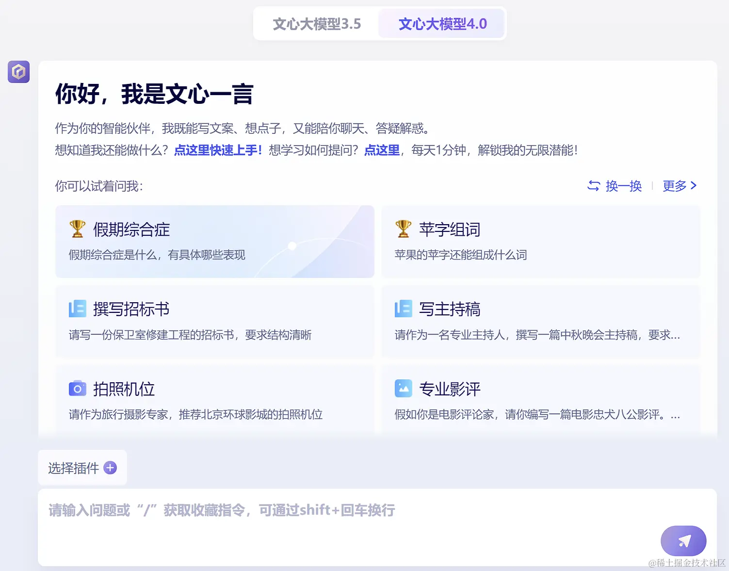 在文心一言的网站上,现在已经出现了文心大模型 4.0 的标签,表面看起来和 3.5 版没有太大区别: